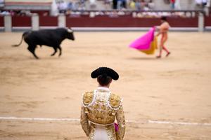 (250908) -- MADRID, 8 septiembre, 2025 (Xinhua) -- Imagen del 7 de septiembre de 2025 de un torero observando una...