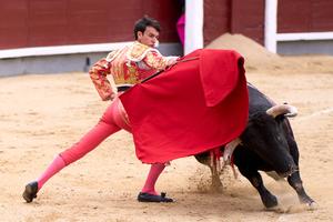 (250908) -- MADRID, 8 septiembre, 2025 (Xinhua) -- Imagen del 7 de septiembre de 2025 de un torero encarando a...