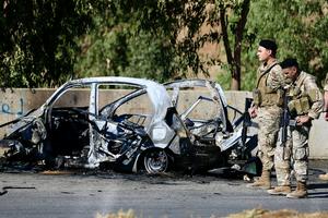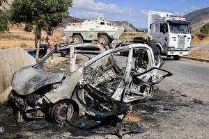 (251002) -- NABATIEH, 2 octubre, 2025 (Xinhua) -- Imagen del 2 de octubre de 2025 de un automóvil impactado por...