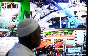 (251002) -- SIDOARJO, 2 octubre, 2025 (Xinhua) -- Familiares de las víctimas observan la transmisión en vivo de las operaciones...