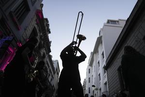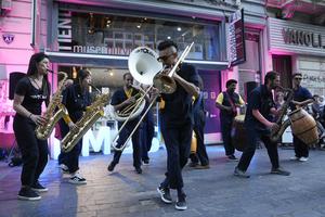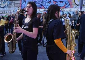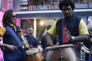 (251002) -- MONTEVIDEO, 2 octubre, 2025 (Xinhua) -- Imagen del 1 de octubre de 2025 de músicos de la banda...