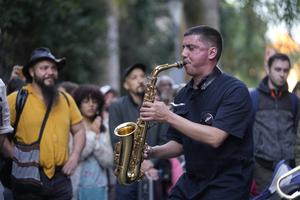 (251002) -- MONTEVIDEO, 2 octubre, 2025 (Xinhua) -- Imagen del 1 de octubre de 2025 de un músico de la...
