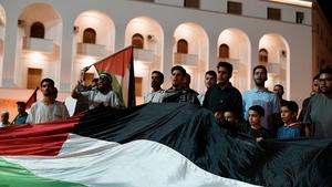 (251002) -- TRIPOLI, 2 octubre, 2025 (Xinhua) -- Imagen del 1 de octubre de 2025 de personas reuniéndose para apoyar...