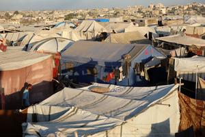 (251002) -- GAZA, 2 octubre, 2025 (Xinhua) -- Imagen del 30 de septiembre de 2025 de palestinos desplazados vistos en...