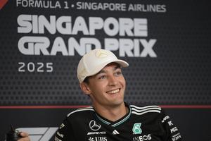 (251002) -- SINGAPUR, 2 octubre, 2025 (Xinhua) -- El piloto británico de la escudería Mercedes, George Russell, asiste a la conferencia de prensa previa a la carrera del Gran Premio de Singapur 2025 de Fórmula 1, en Singapur, el 2 de octubre de 2025. (Xinhua/Then Chih Wey) (rtg) (ra) (vf)