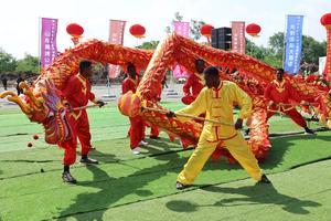 (251005) -- ACRA, 5 octubre, 2025 (Xinhua) -- Imagen del 4 de octubre de 2025 de residentes realizando una presentación de una danza del dragón durante una ceremonia de colocación de primera piedra para el comienzo del Parque de Atracciones Internacional Bright, en Afienya, en la Región de Gran Acra, Ghana. Una ceremonia de colocación de la primera piedra de un parque de atracciones ultramoderno construido por Greenhouse International Development Group, una empresa china, se celebró el sábado en Afienya, cerca de la ciudad portuaria de Tema, en Ghana. (Xinhua/Seth) (rtg) (ah)
