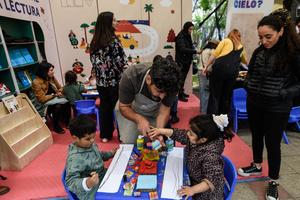 (251006) -- SANTIAGO, 6 octubre, 2025 (Xinhua) -- Imagen del 5 de octubre de 2025 de niños asistiendo a la 14ª Primavera del Libro, en Santiago, capital de Chile. La Primavera del Libro con 14 años de vida se extendió del 3 al 5 de octubre, al consagrarse como uno de los espacios relevantes para las editoriales independientes, así como de pequeño o mediano tamaño del país sudamericano con más de 200 casas editoras presentes en la versión 2025. (Xinhua/Jorge Villegas) (jv) (oa) (ah) (vf)
