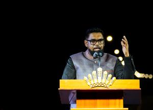 (251006) -- GEORGETOWN, 6 octubre, 2025 (Xinhua) -- Imagen del 5 de octubre de 2025 del presidente de Guyana, Irfaan...