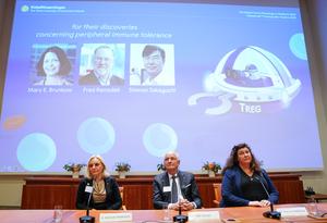 (251006) -- ESTOCOLMO, 6 octubre, 2025 (Xinhua) -- Retratos de los galardonados con el Premio Nobel de Fisiología o Medicina...