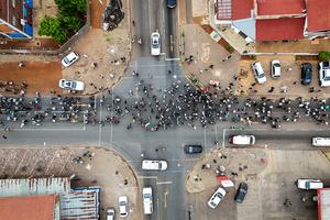 (251006) -- JOHANNESBURGO, 6 octubre, 2025 (Xinhua) -- Vista aérea tomada con un dron el 5 de octubre de 2025...