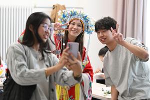 (251006) -- BEIJING, 6 octubre, 2025 (Xinhua) -- Estudiantes chinos e internacionales participan en un evento con motivo del Festival...