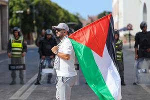 (251006) -- RABAT, 6 octubre, 2025 (Xinhua) -- Imagen del 5 de octubre de 2025 de un hombre sosteniendo un...