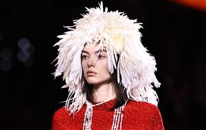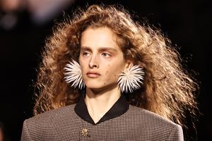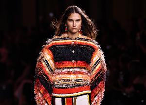 (251007) -- PARIS, 7 octubre, 2025 (Xinhua) -- Imagen del 6 de octubre de 2025 de una modelo presentando creaciones...