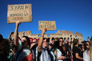 (251005) -- ROMA, 5 octubre, 2025 (Xinhua) -- Imagen del 4 de octubre de 2025 de personas asistiendo a una...