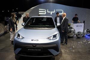(251008) -- BUENOS AIRES, 8 octubre, 2025 (Xinhua) -- Personas observan el modelo Dolphin Mini de la compañía china de...
