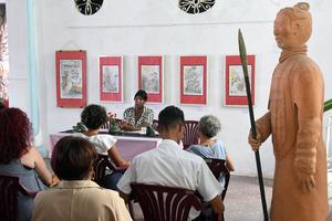 (251008) -- LA HABANA, 8 octubre, 2025 (Xinhua) -- Imagen del 7 de octubre de 2025 de la decana de la Facultad de Turismo de la Universidad de La Habana, Lisandra Torres (atrás), hablando durante una conferencia académica realizada en la Casa de Artes y Tradiciones Chinas, como parte del programa de actividades conmemorativas por el 65º aniversario del establecimiento de relaciones diplomáticas entre China y Cuba, en La Habana, capital de Cuba. Las potencialidades del Barrio Chino de La Habana como una opción para el turismo urbano en la nación caribeña fueron presentadas el martes en una conferencia académica. (Xinhua/Joaquín Hernández) (jh) (ah) (ra) (vf)