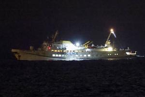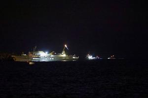 (251008) -- ASHDOD, 8 octubre, 2025 (Xinhua) -- Un barco de la flotilla con destino a Gaza es remolcado hacia...