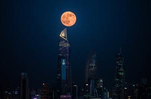 (251008) -- CIUDAD DE KUWAIT, 8 octubre, 2025 (Xinhua) -- Imagen del 7 de octubre de 2025 de la luna...