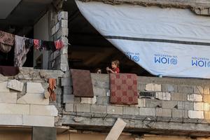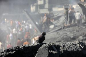 (251008) -- GAZA, 8 octubre, 2025 (Xinhua) -- Imagen del 26 de octubre de 2023 de una paloma vista entre...