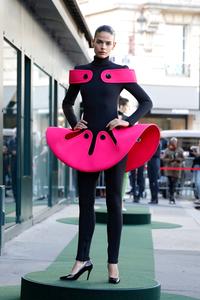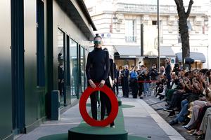 (251008) -- PARIS, 8 octubre, 2025 (Xinhua) -- Imagen del 7 de octubre de 2025 de una modelo presentando...
