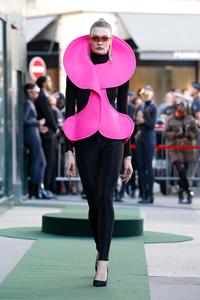 (251008) -- PARIS, 8 octubre, 2025 (Xinhua) -- Imagen del 7 de octubre de 2025 de una modelo presentando una...