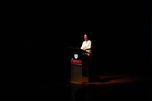 (251010) -- SANTIAGO, 10 octubre, 2025 (Xinhua) -- Imagen del 9 de octubre 2025 de la ministra de las Culturas, las Artes y el Patrimonio de Chile, Carolina Arredondo Marzá, hablando durante la presentación de la versión 2026 del Festival Internacional Teatro a Mil, en el Centro Cultural Gabriela Mistral, en Santiago, capital de Chile. "Sí importa" es el lema de la versión 2026 del Festival Internacional Teatro a Mil de Chile, que exhibirá 89 espectáculos de sala y calle de 16 países de Europa, Asia y América en enero próximo. (Xinhua/Jorge Villegas) (jv) (oa) (ra) (vf)