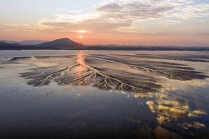 (251012) -- JIAXING, 12 octubre, 2025 (Xinhua) -- Vista aérea tomada con un dron el 2 de octubre de 2025 de una llanura de marea después del retroceso de la marejada del río Qiantang, en la ciudad de Haining, en la provincia de Zhejiang, en el este de China. La marejada del río Qiantang, famosa por su altura y velocidad, es una atracción turística tradicional en la provincia de Zhejiang. Cada año, olas gigantes rompen en las orillas del río, cerca de la ciudad de Haining. Tras el reflujo de la marea, aparecen diferentes patrones con forma de árbol en la llanura de marea. (Xinhua/Li Jing) (rtg) (da)