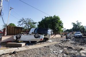 (251012) -- POZA RICA, 12 octubre, 2025 (Xinhua) -- Imagen del 12 de octubre de 2025 de vehículos dañados por las lluvias, en la ciudad de Poza Rica, en el estado de Veracruz, México. El estado mexicano de Veracruz, en la región oriental del país, enfrenta una severa emergencia derivada del desbordamiento del río Cazones que arrasó con viviendas, caminos y cosechas, en la región norte de la localidad del Golfo de México. (Xinhua/Francisco Cañedo) (fc) (oa) (da)