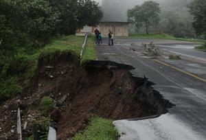 (251010) -- PUEBLA, 10 octubre, 2025 (Xinhua) -- Imagen cedida por el Sol de Puebla de una carretera afectada por las lluvias, en Huauchinango, estado de Puebla, México, el 10 de octubre de 2025. Al menos 24 muertos han dejado las intensas lluvias que han azotado gran parte de México en los últimos días, además de miles de viviendas afectadas, deslaves y desbordamientos de ríos, de acuerdo con reportes de los gobernadores de los estados del centro y este del país en una reunión virtual con la presidenta mexicana, Claudia Sheinbaum. (Xinhua/Daniel Casas/El Sol de Puebla) (vf) (ce) ***CREDITO OBLIGATORIO*** ***SOLO USO EDITORIAL***