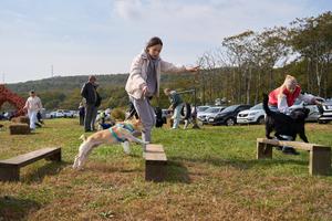 (251012) -- VLADIVOSTOK, 12 octubre, 2025 (Xinhua) -- Perros participan en una carrera de obstáculos durante un carnaval canino, en Vladivostok, Rusia, el 12 de octubre de 2025. La ciudad rusa de Vladivostok celebró el domingo un carnaval canino en la playa de Akhlyostyshev, con exhibiciones de habilidades de mascotas, un desfile de disfraces y divertidas competiciones. El evento atrajo a muchos residentes que participaron con sus perros. (Xinhua/Guo Feizhou) (oa) (ah)