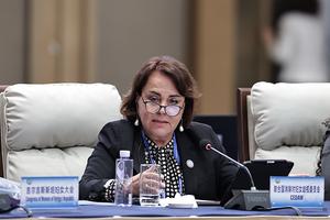(251013) -- BEIJING, 13 octubre, 2025 (Xinhua) -- Nahla Haidar, presidenta del Comité de la Organización de las Naciones Unidas para la Eliminación de la Discriminación contra la Mujer, asiste a la reunión plenaria de la Conferencia de Líderes Mundiales sobre la Mujer, en Beijing, capital de China, el 13 de octubre de 2025. (Xinhua/Zhang Yuwei) (rtg) (ah) (ce)