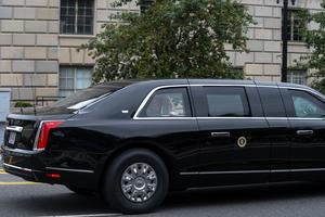 (251013) -- WASHINGTON, 13 octubre, 2025 (Xinhua) -- Imagen del 12 de octubre de 2025 del presidente estadounidense, Donald Trump saludando desde su vehículo mientras se retira de la Casa Blanca hacia Medio Oriente, en Washington D. C., Estados Unidos. Trump pronunció el lunes un discurso en el Parlamento israelí, la Knesset, durante una breve visita luego de que el cese al fuego entre Israel y Hamas entrara en su cuarto día, elogiando el "fin" de los dos años de guerra de Israel en Gaza. (Xinhua/Hu Yousong) (rtg) (ah) (ce)