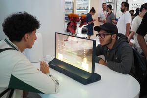 (251014) -- YIWU, 14 octubre, 2025 (Xinhua) -- Comerciantes extranjeros experimentan un dispositivo interactivo de traducción de inteligencia artificial en el Centro Global de Comercio Digital, en Yiwu, en la provincia de Zhejiang, en el este de China, el 14 de octubre de 2025. El Centro Global de Comercio Digital, un proyecto emblemático en la construcción del mercado de sexta generación en Yiwu, fue inaugurado aquí el martes, marcando el comienzo de un nuevo proceso de transición del comercio tradicional al comercio digital en Yiwu. (Xinhua/Liu Ziyi) (jg) (ra) (vf)
