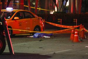 (251014) -- GUAYAQUIL, 14 octubre, 2025 (Xinhua) -- Un cadáver yace en el piso en el lugar donde se registró...