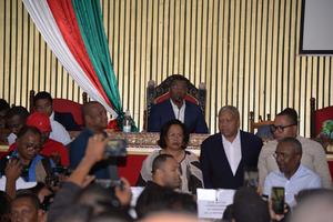 (251015) -- ANTANANARIVO, 15 octubre, 2025 (Xinhua) -- Imagen del 14 de octubre de 2025 de una sesión extraordinaria de...