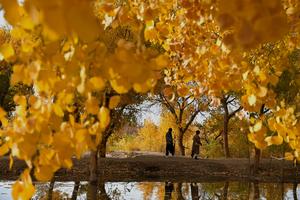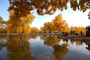 (251015) -- DUNHUANG, 15 octubre, 2025 (Xinhua) -- Imagen del 14 de octubre de 2025 de turistas disfrutando del paisaje...