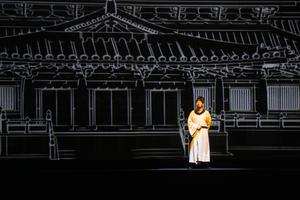 (251015) -- DUNHUANG, 15 octubre, 2025 (Xinhua) -- Un actor realiza una presentación durante el drama inmersivo "Encore Dunhuang", en...