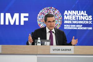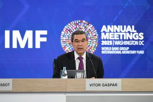 (251015) -- WASHINGTON, 15 octubre, 2025 (Xinhua) -- Vitor Gaspar, director saliente del Departamento de Asuntos Fiscales del Fondo Monetario...