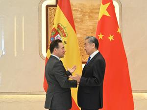 (251015) -- HANGZHOU, 15 octubre, 2025 (Xinhua) -- El ministro de Relaciones Exteriores chino, Wang Yi, también miembro del Buró...
