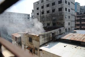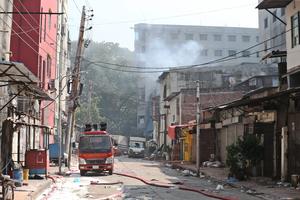 (251015) -- DHAKA, 15 octubre, 2025 (Xinhua) -- Imagen del 15 de octubre de 2025 del sitio de un incendio...