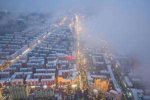 (251015) -- HARBIN, 15 octubre, 2025 (Xinhua) -- Trabajadores laboran en la nieve en el Yacimiento Petrolífero de Daqing, en...