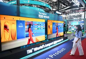 (251015) -- GUANGZHOU, 15 octubre, 2025 (Xinhua) -- Una mujer visita el estand de Hisense durante la 138ª edición de...
