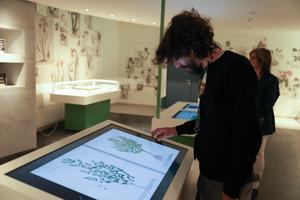 (251016) -- ROMA, 16 octubre, 2025 (Xinhua) -- Un invitado observa una pantalla digital de plantas en el Museo de...