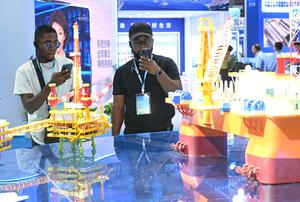 (251016) -- FUZHOU, 16 octubre, 2025 (Xinhua) -- Participantes visitan la Conferencia Mundial de Equipo Marítimo 2025, en Fuzhou, en...