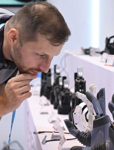 (251016) -- GUANGZHOU, 16 octubre, 2025 (Xinhua) -- Imagen del 15 de octubre de 2025 de un comprador extranjero observando...