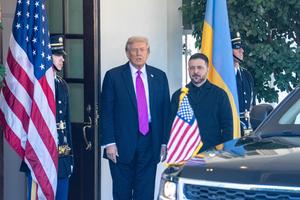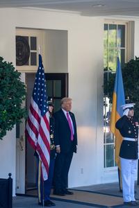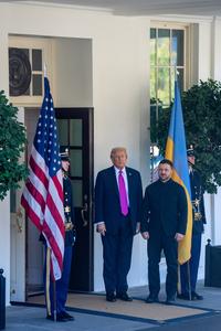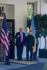 (251017) -- WASHINGTON, 17 octubre, 2025 (Xinhua) -- El presidente de Estados Unidos, Donald Trump (2-i), da la bienvenida al...