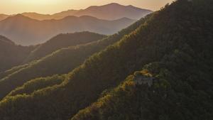 (251018) -- BEIJING, 18 octubre, 2025 (Xinhua) -- Imagen tomada con un dron del paisaje otoñal de la Gran Muralla...