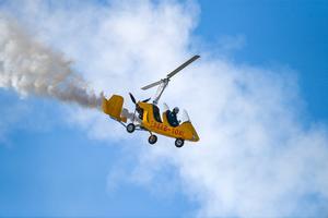 (251018) -- TIANJIN, 18 octubre, 2025 (Xinhua) -- Un girocóptero realiza una presentación durante la séptima Exposición de Helicópteros de...