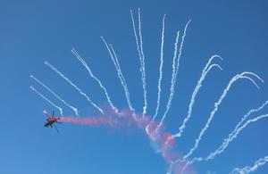 (251018) -- TIANJIN, 18 octubre, 2025 (Xinhua) -- Helicópteros del equipo de acrobacias aéreas Fenglei del Ejército Popular de Liberación...