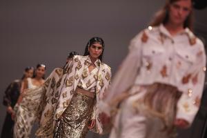(251018) -- CIUDAD DE MEXICO, 18 octubre, 2025 (Xinhua) -- Imagen del 17 de octubre de 2025 de modelos presentando...